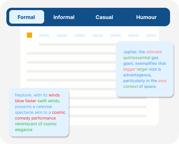 Our AI-driven content editing service employs sophisticated algorithms to meticulously analyze and enhance your content. It streamlines the editorial process by automatically refining style, consistency, and grammar. This accelerates publication timelines and minimizes manual labor, freeing your team to concentrate on more strategic initiatives.