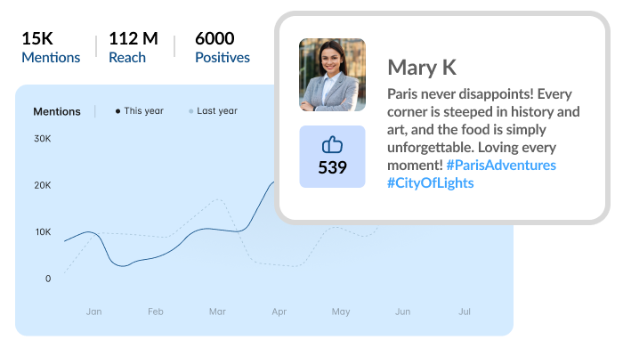 Our service promptly identifies negative mentions, enabling you to formulate an effective communication strategy to tackle any crisis efficiently.