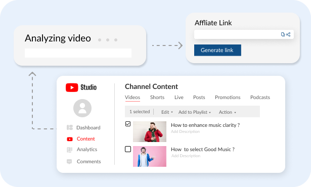 Invinci seamlessly integrates affiliate link generation into your YouTube workflow, saving you time and enhancing productivity, whether you're posting new videos or updating existing ones.